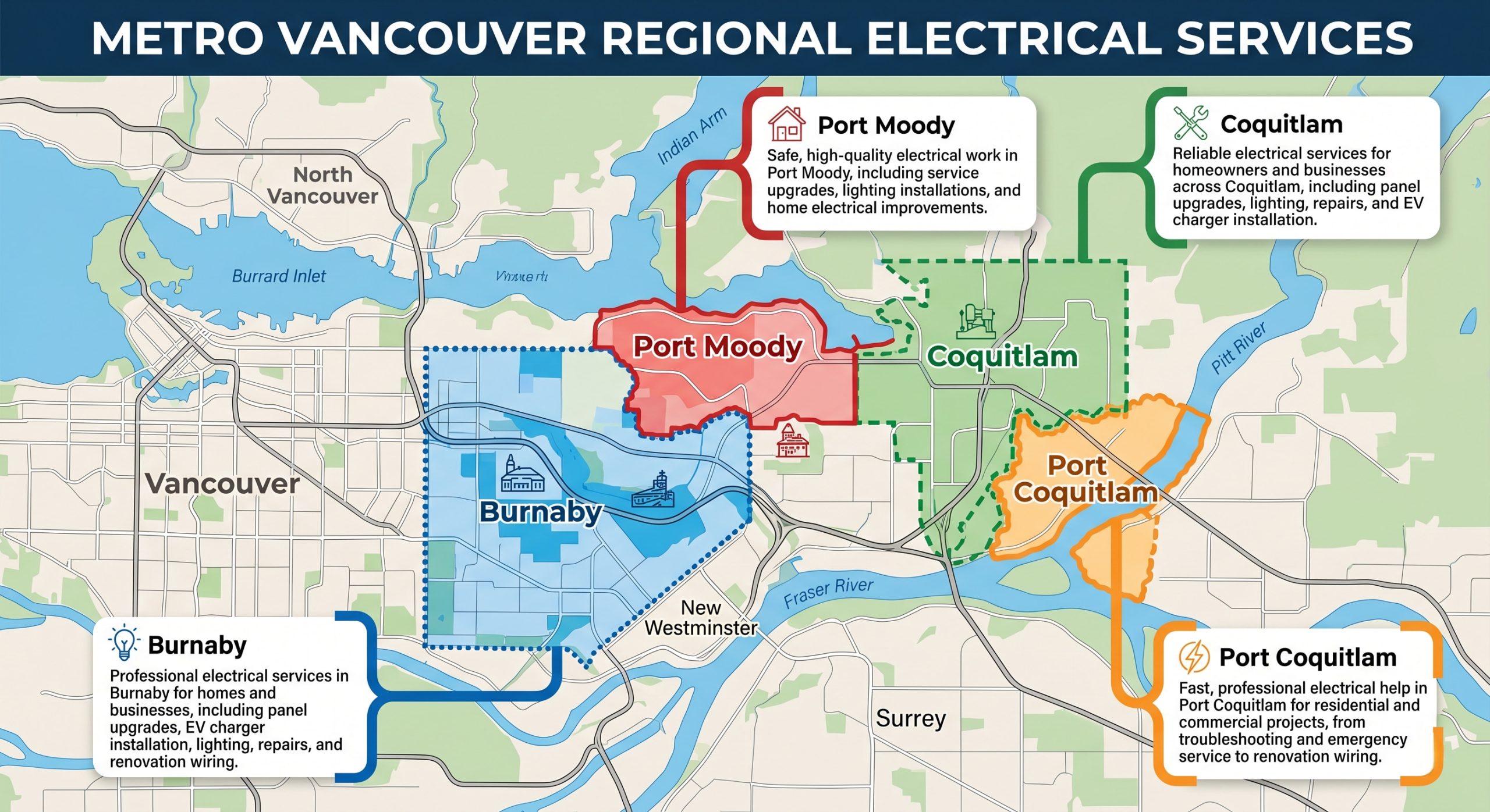 Looking for electricians in Port Coquitlam, Coquitlam or Port Moody? Call us whenever you want; We are here to help you.